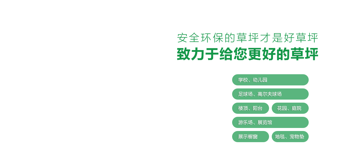 安全環保 草纖維使用色母粒著色,不含重金屬,可長時間接觸皮膚,為周圍環境無任何影響 天然、仿真 采用了仿生態學的原理,使運動者在草坪上的腳感、球的反彈速度等均與在天然草坪上十分接近,且有良好的滲水性。 溫度范圍穩定 應用范圍不受雨天、雪天等自然條件的限制,在高溫、高寒的氣候環境條件下,草纖維物理性能依然穩定,確保草絲正常使用 抗耐磨 生產采用多項現代化科學技術,使產品抗拉強度、牢固度、柔韌性、耐磨性、抗老化性、色牢度等均達到相當高的水平。 抗UV 全球最頂級抗UV添加劑與領先的工藝結合,確保草坪在長期的紫外線照射下仍能保持色彩的鮮艷及性能的穩定