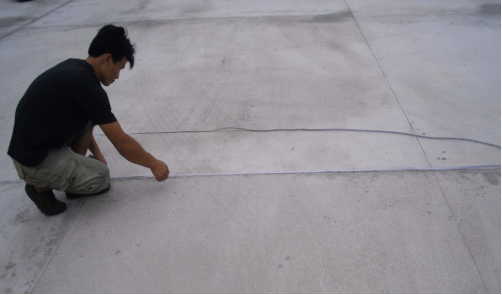 當(dāng)草皮攤鋪拼接完畢后,草皮上摺折的部份需要以裁紙刀開口,拉直對(duì)接,切除重疊的部份,然后膠結(jié)壓實(shí)。